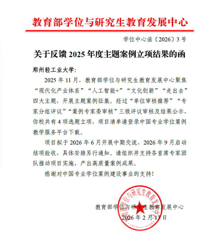 2月13日,教育部学位与研究生教育发展中心公布了2025年度主题案例立项结果,我校4项主题案例获批立项,涵盖“现代化产业体系”和“文化创新”两大核心主题,立项数量位居省内高校第一,这一佳绩标志着我校在研究生专业学位教育改革与实践创新方面取得了新突破,进一步彰显了学校在研究生教育教学改革方面的显著成效。